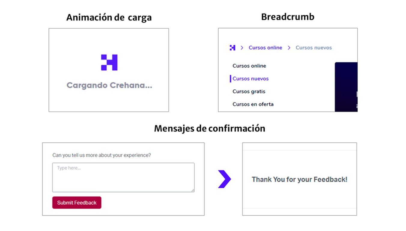 - Feedback inmediato: Proporcionar retroalimentación inmediata cuando se realiza una acción, como una confirmación o un mensaje de error, para mantener al usuario informado y reducir la incertidumbre.