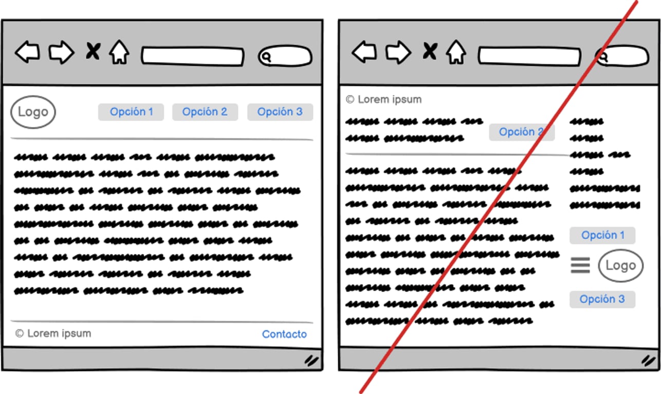 - Convenciones de navegación: Seguir convenciones de navegación establecidas, como ubicar el menú principal en la parte superior o incluir íconos estándar para acciones comunes, para facilitar la navegación intuitiva.