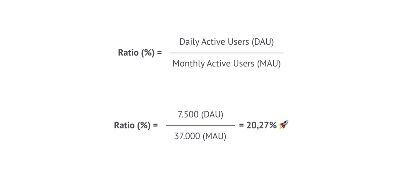 - Usuarios Activos Diarios (DAU) / Usuarios Mensuales Activos (MAU): Proporción que muestra la frecuencia de uso diario o semanal en relación con el uso mensual.